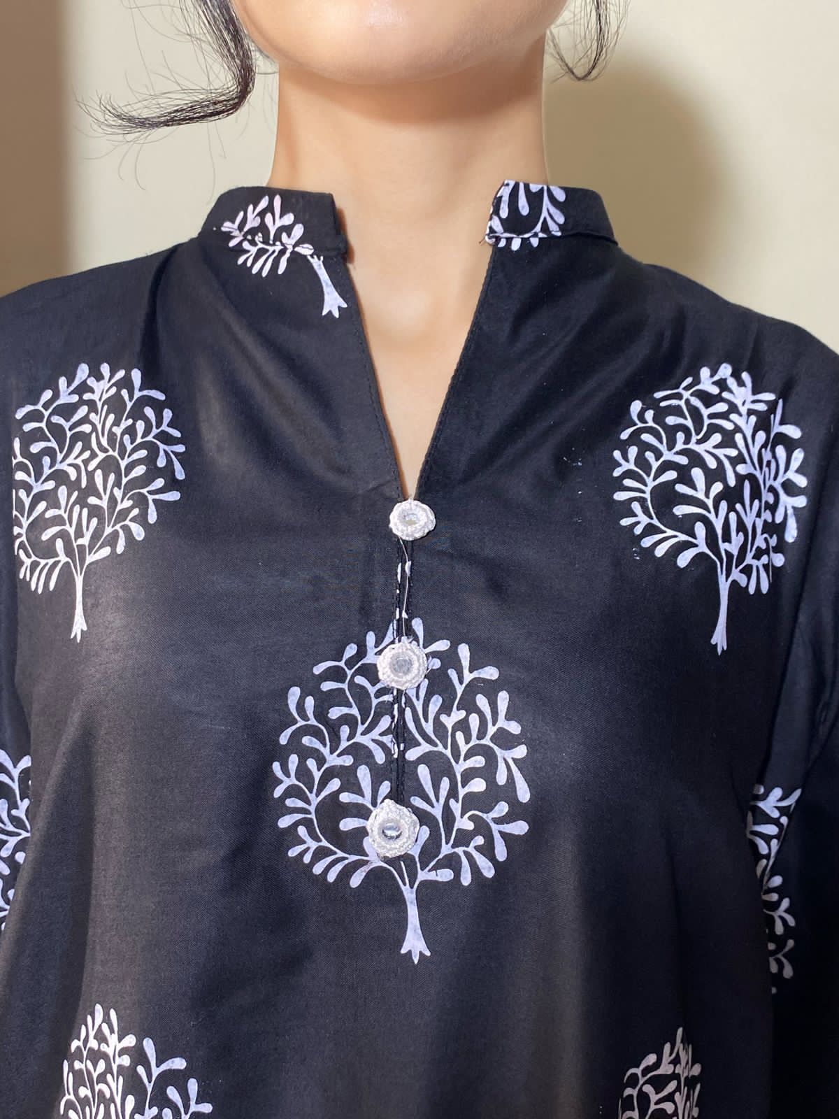 2 Pc Tree Design Beautiful Printed Shirt + Trouser (Black)