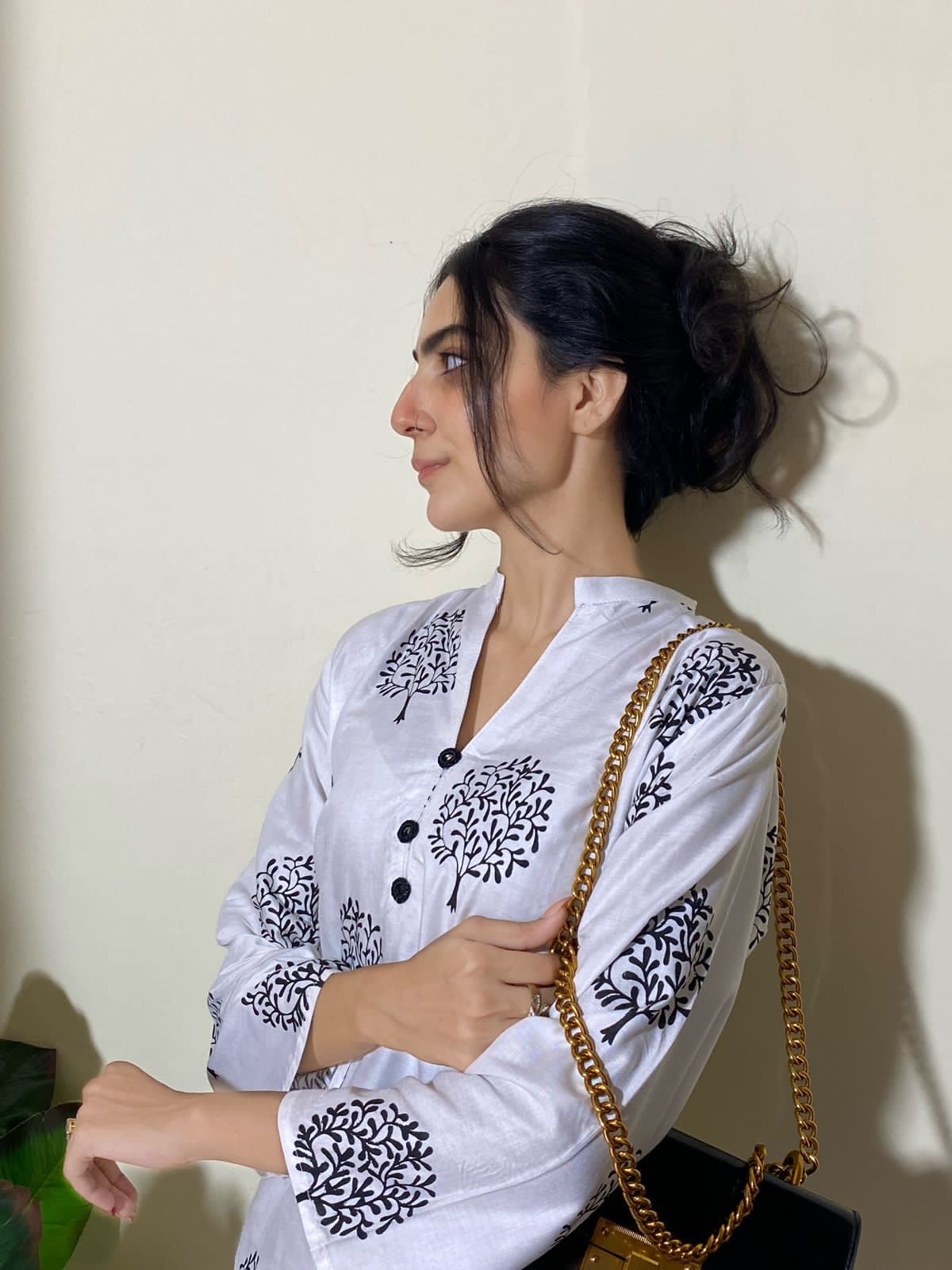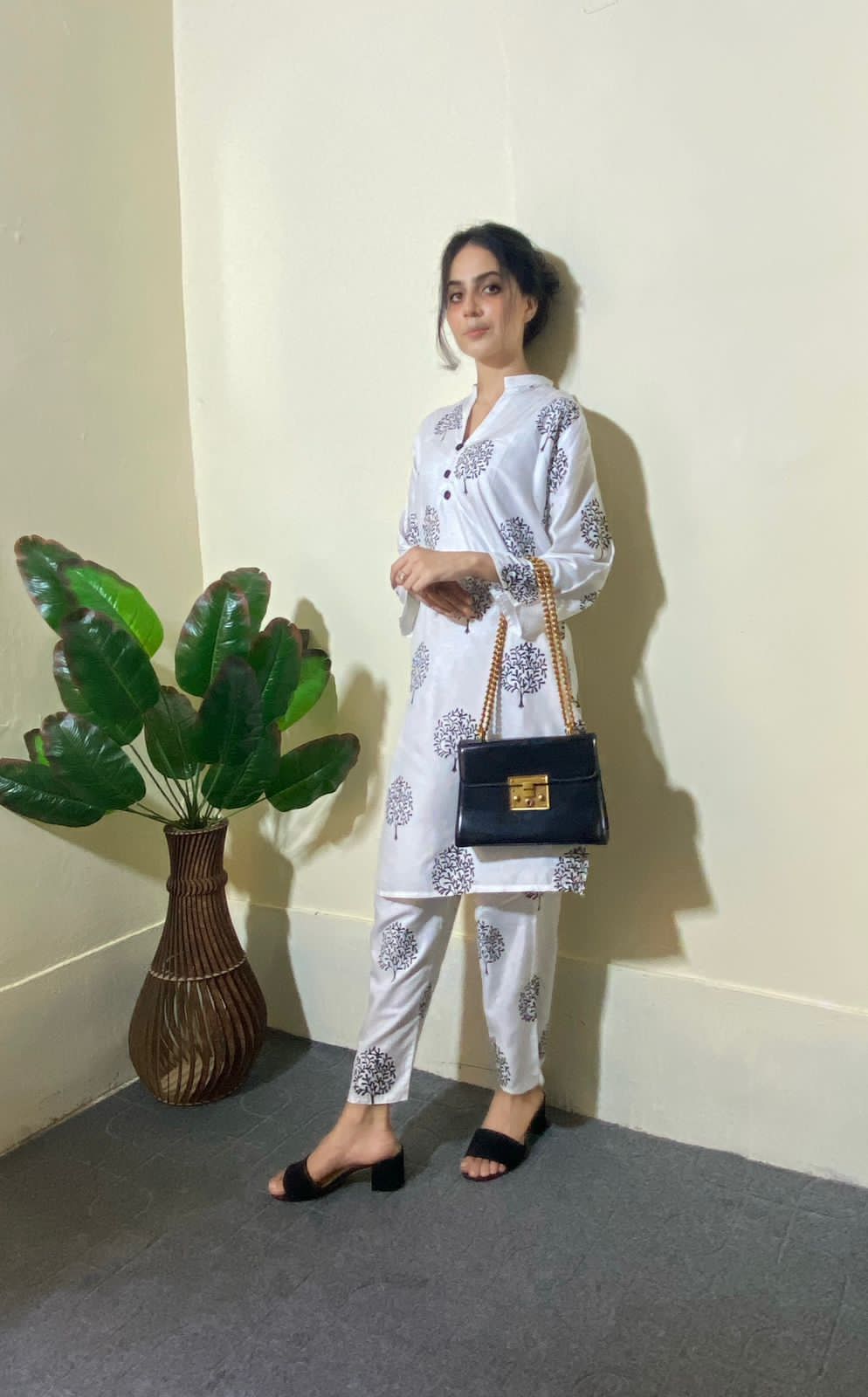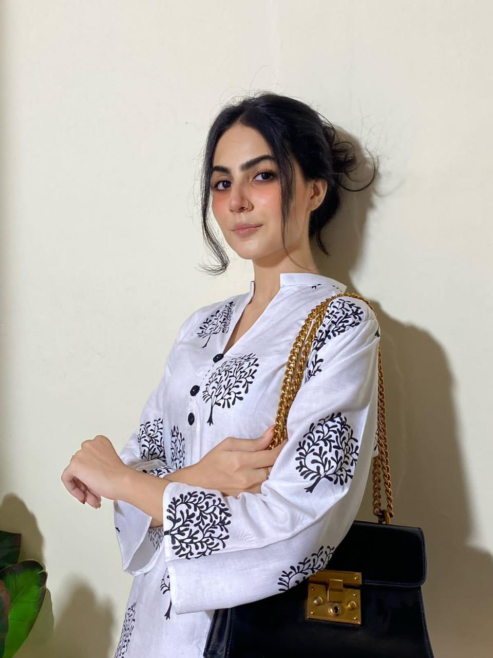 2 Pc Tree Design Beautiful Printed Shirt + Trouser (White)