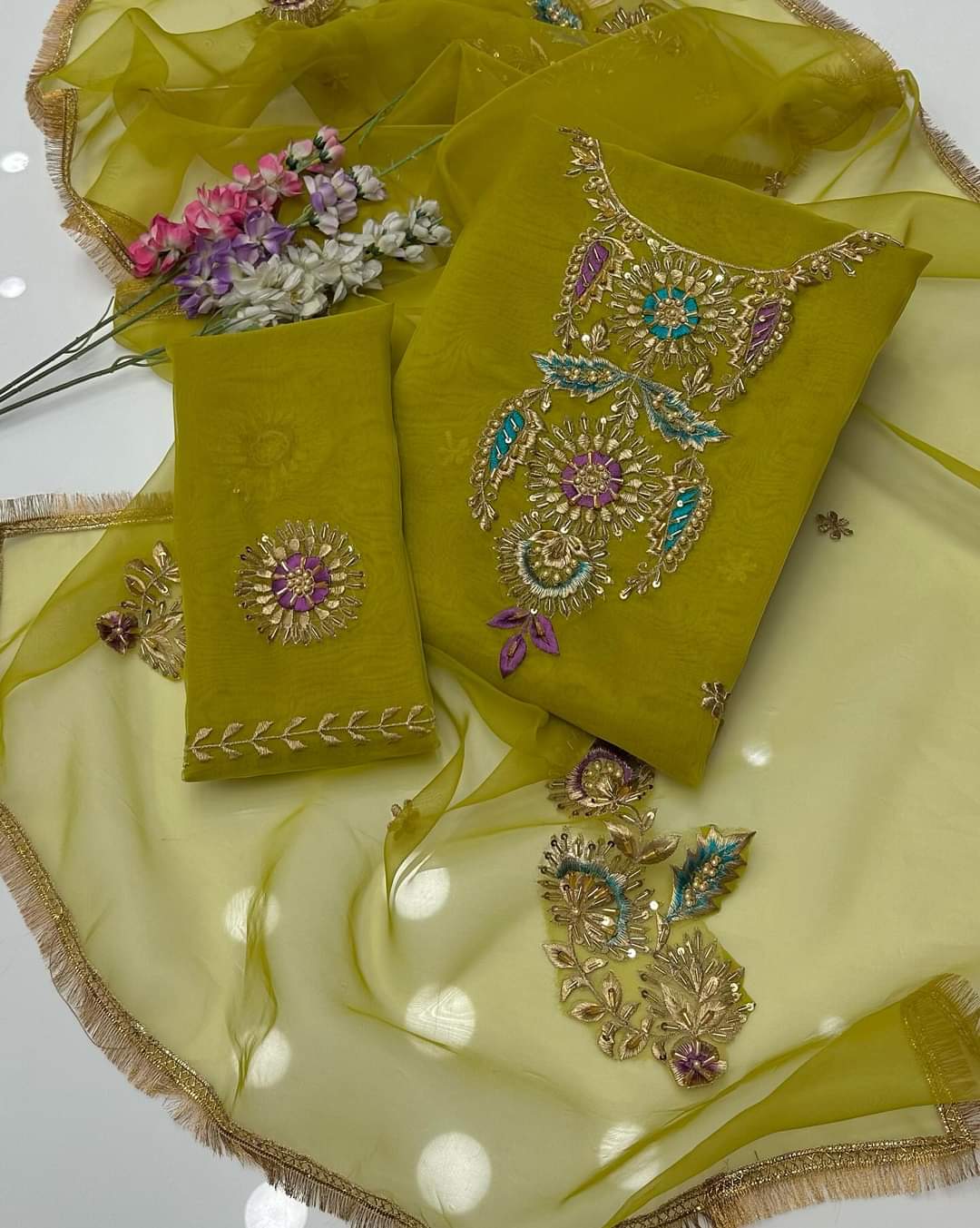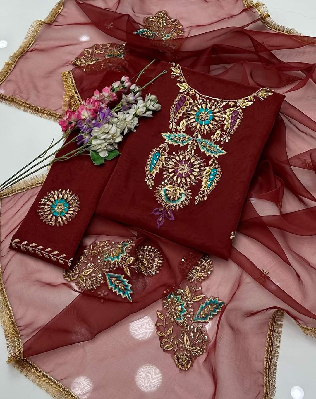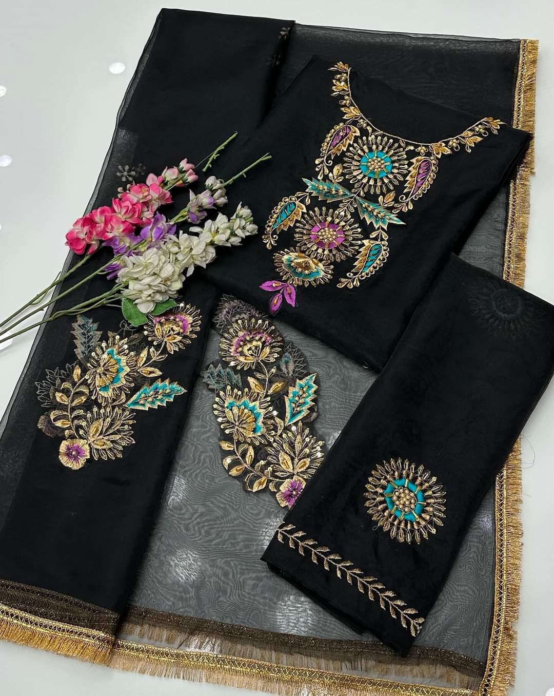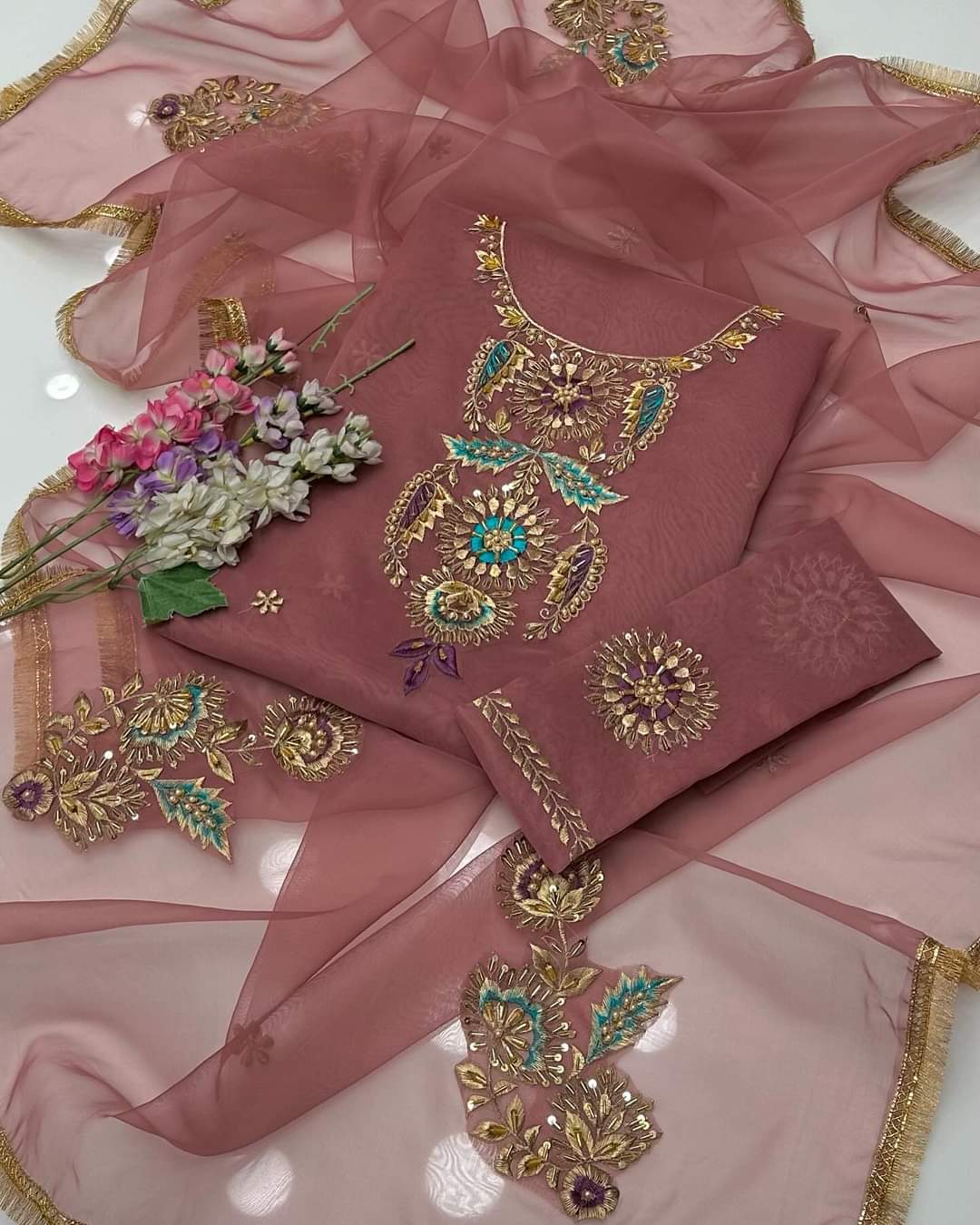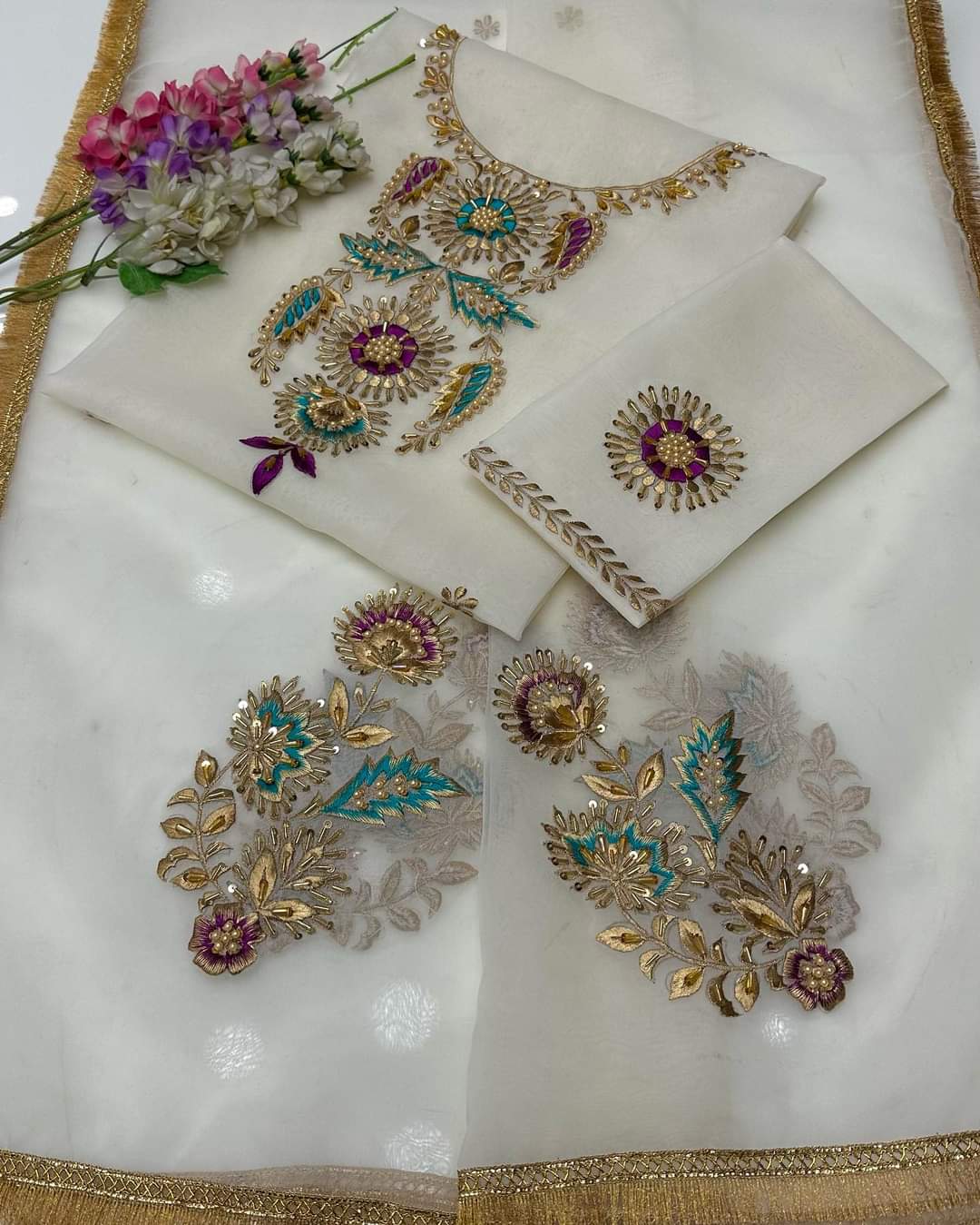 2 pcs organza zarri beads handwork shirt Organza zarri beads handwork dupata(New arrival)