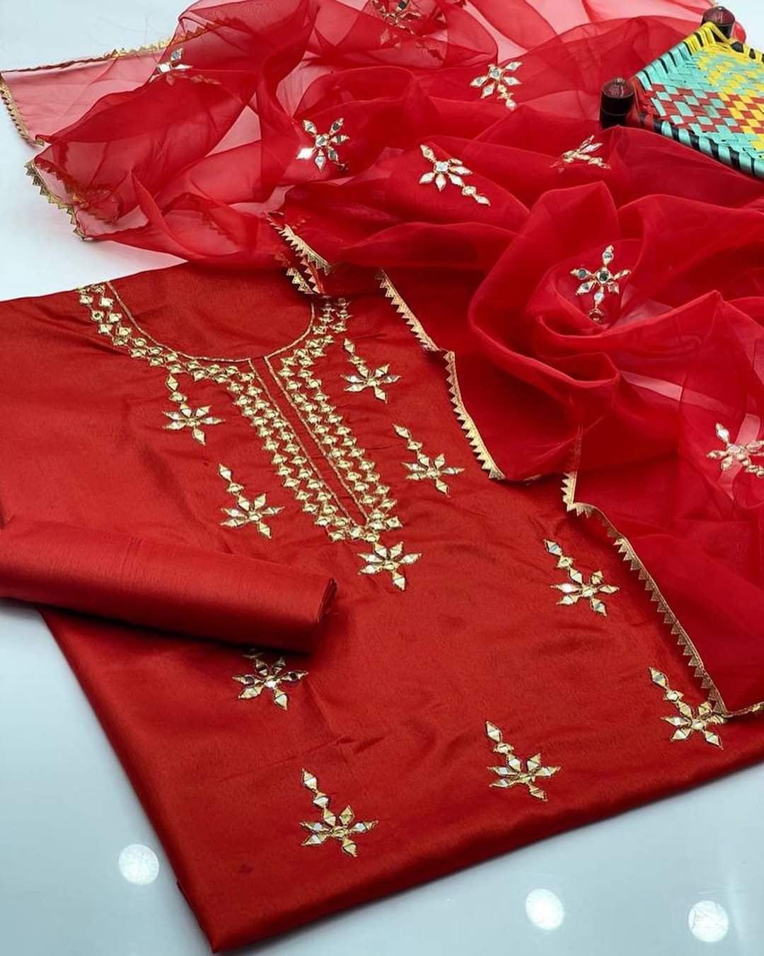 3 pice suit Qatan silk mirror work shirt and trouser Organza mirror work duptta
