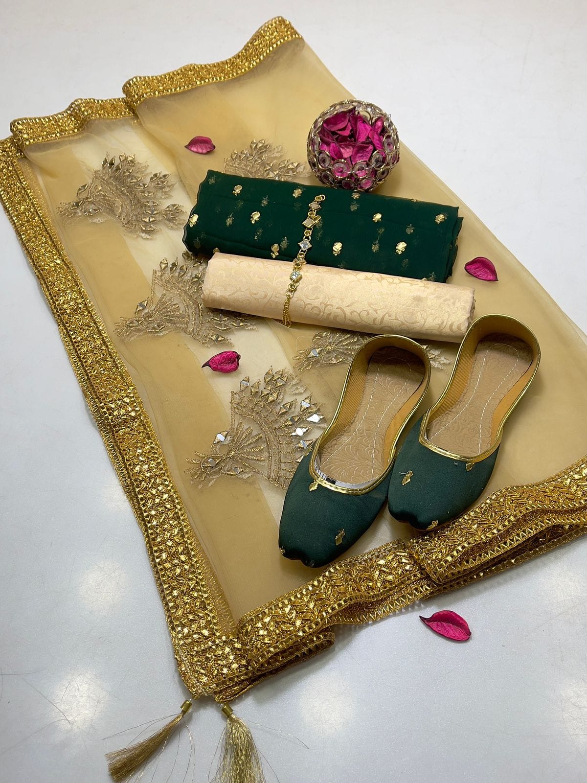 4 pcs Krinkal chiffon embroidery shirt Net mirror work dupata Mesuri trouser (Unstitched)