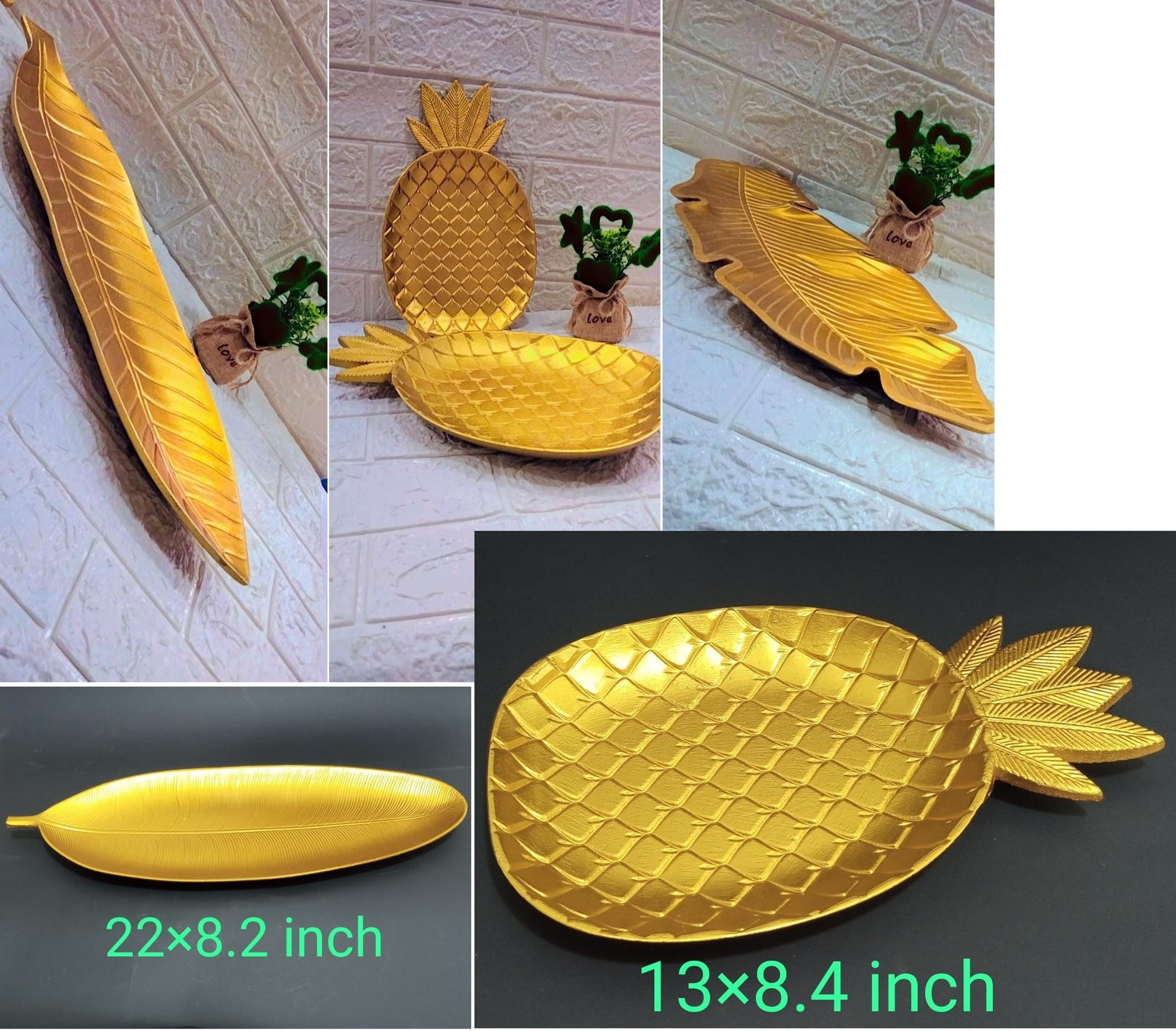 Nordic Decorative Trays Serving Shapes Pineapple Leaf Gold Jewelry Pallet Fruit Snacks Table Dishes Decoration Storage Organizer - Each